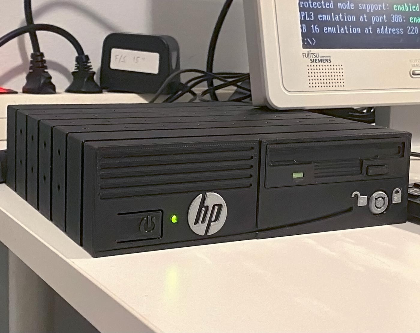 Apr 3 2025 - I designed and printed a new set of "clothes" for a HP t5515 thin client computer. The floppy drive is fake as is the key lock, but the new power button does work.